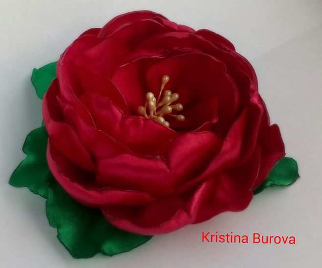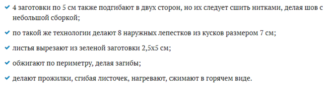 Для однотонной розы среднего размера потребуется лента шириной 4 см и длиной примерно 45 см.