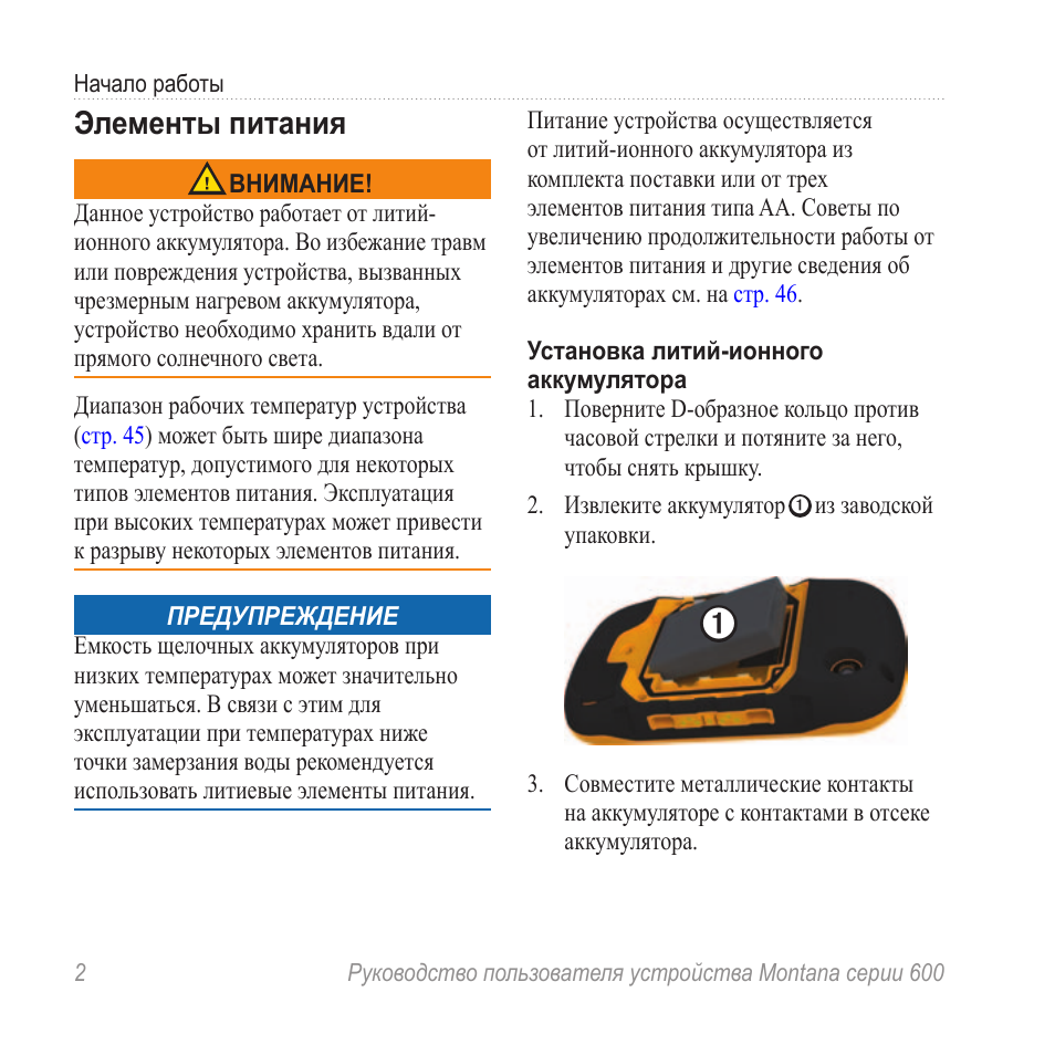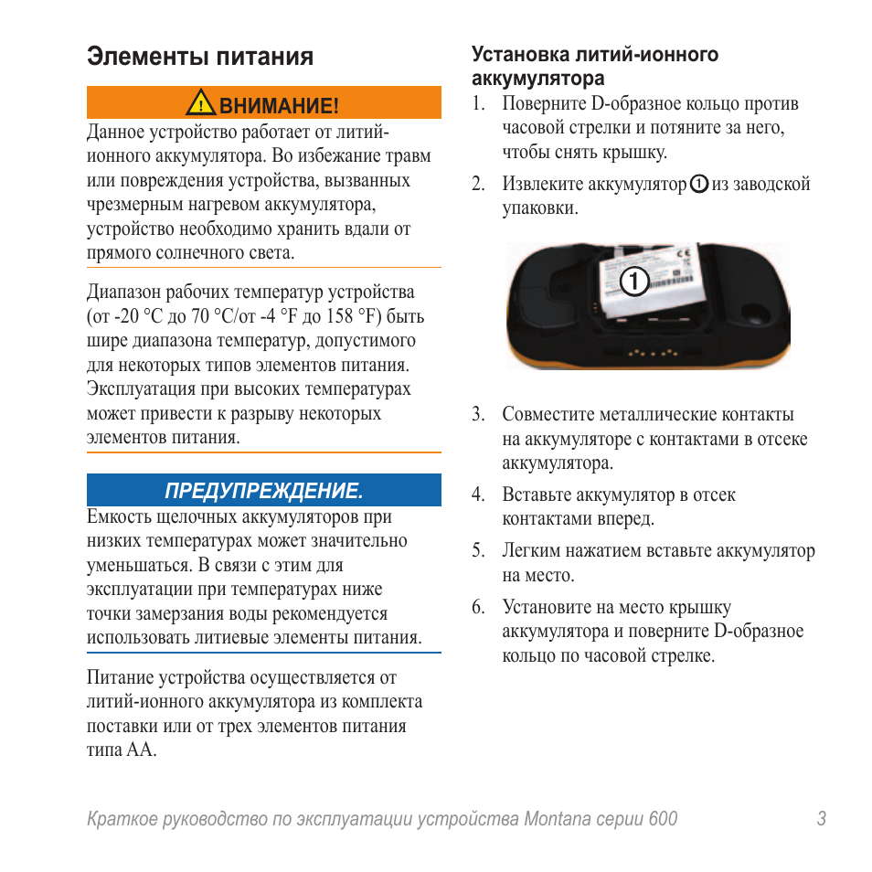 1. Установка элементов питания (