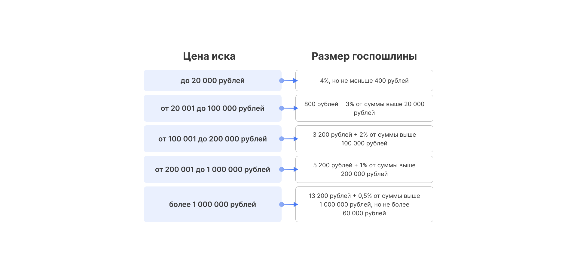 | от 100 001 рубля до 1 000 000 рублей | 10 000 рублей плюс 5% суммы свыше 100 000 рублей |