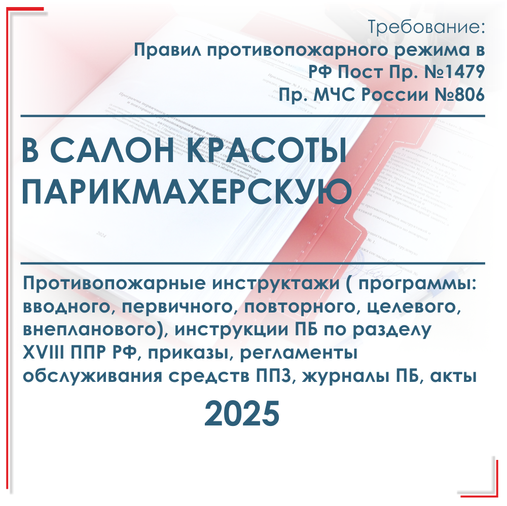 (Требования пункта 2 раздела 1 ППР в РФ утв. Пост. Прав. №1479 ) - Приказ по противопожарным инструктажам с работниками в салоне красоты, парикмахерской 2025 г.