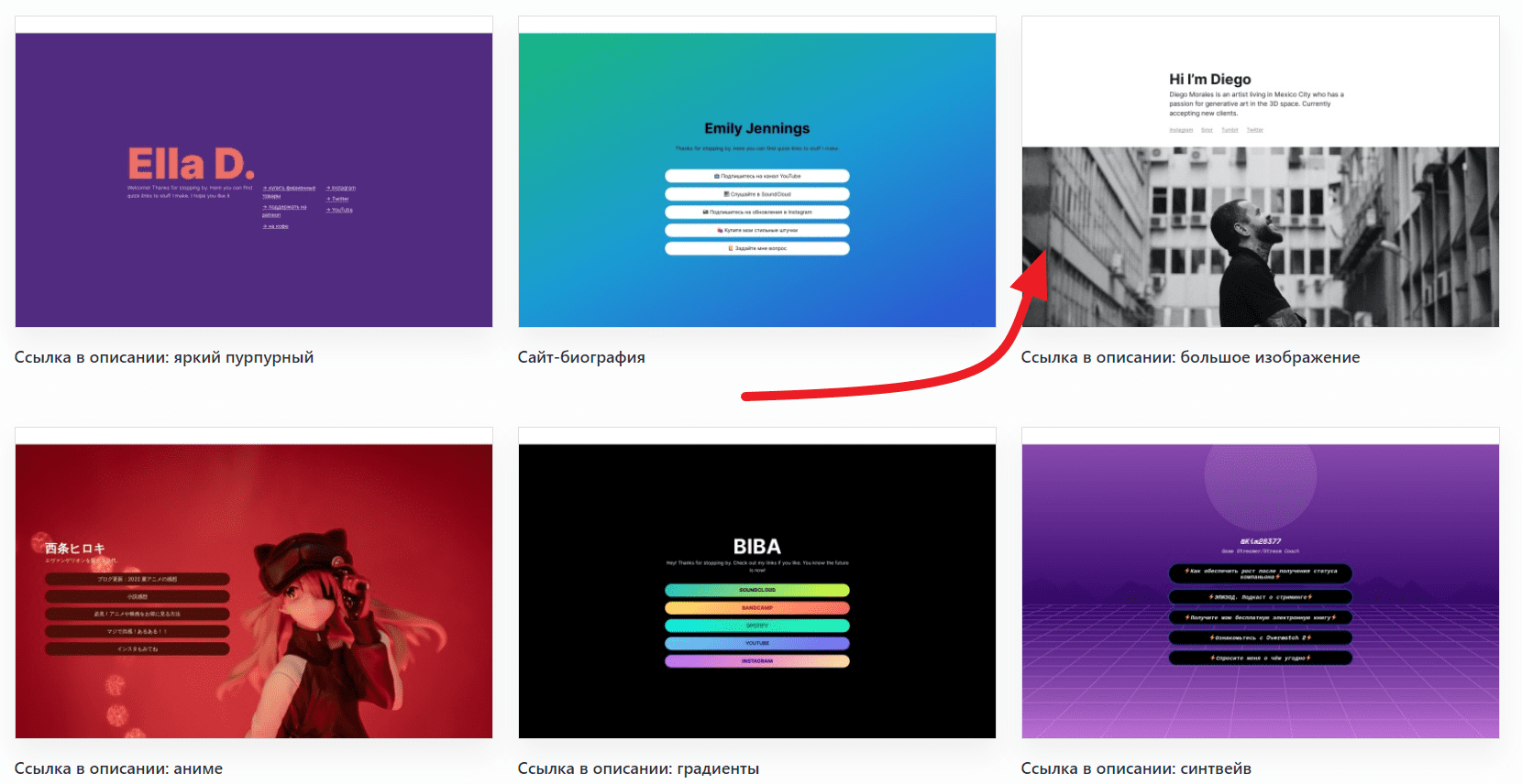 Как частный случай мы рассмотрим сервисы мультиссылки. Это те же самые конструкторы сайтов, но с минимумом возможностей. Изначально они использовались для объединения нескольких ссылок (контактов в соцсетях, мессенджерах и пр.) в одну – например, для Instagram, где можно разместить лишь одну кликабельную ссылку.
