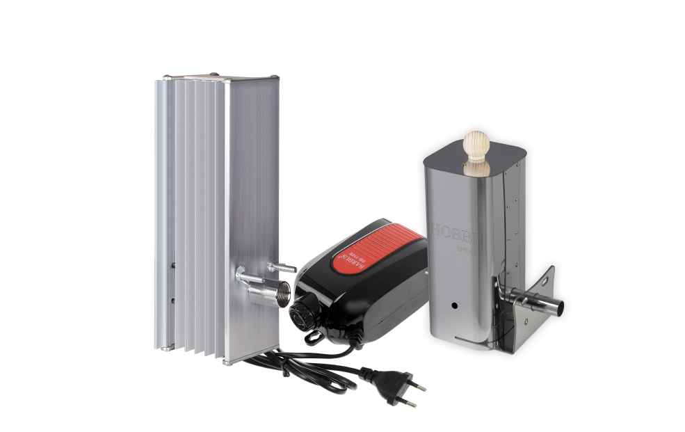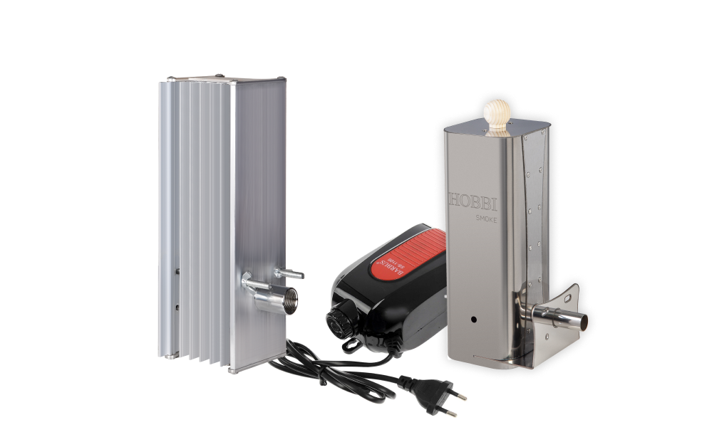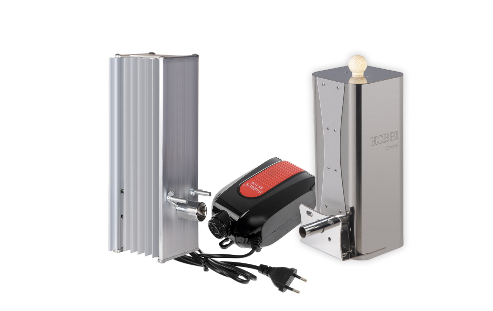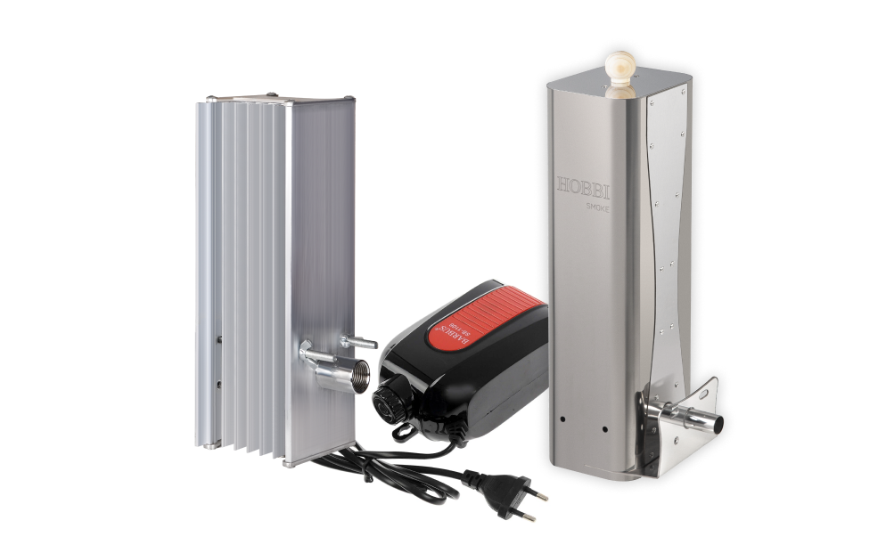 Дымогенератор Hobbi Smoke оснащён охладителем дыма и сборником конденсата из алюминия