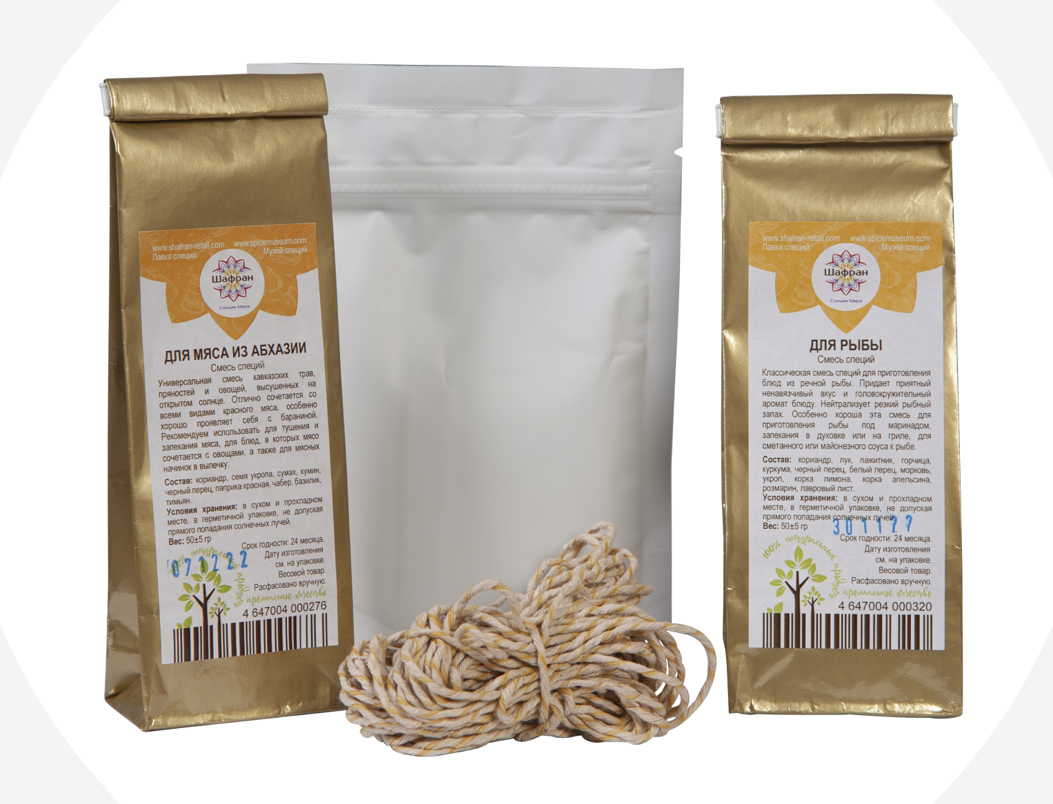 шпагат, соль и специи для рыбы и мяса