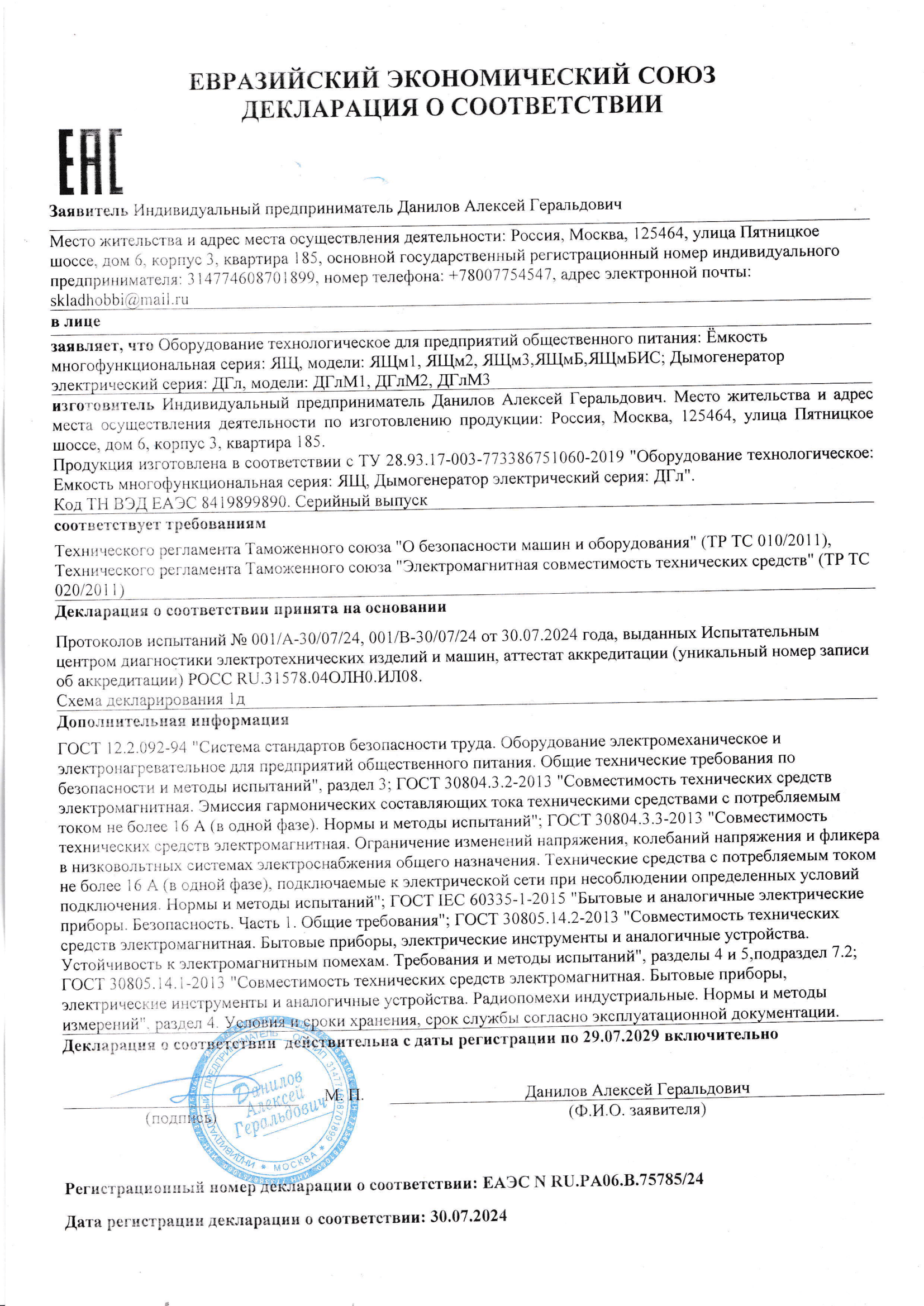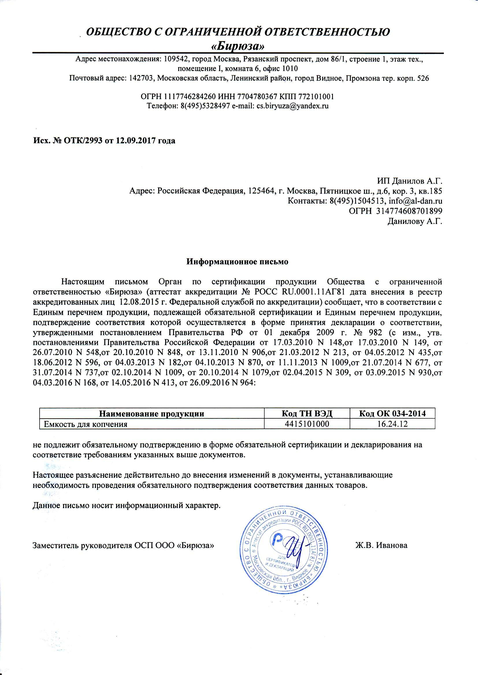 — паспорта на конденсатоприёмник и дымогенератор ;