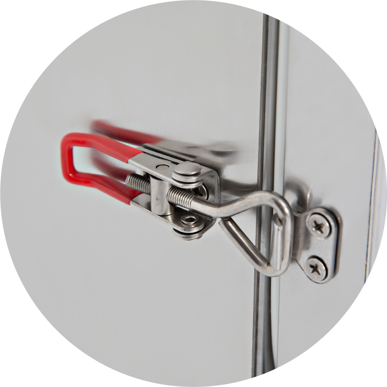 • Бесшовный уплотнитель двери и 3 петли с измененной геометрией обеспечивает полную герметичность камеры.
