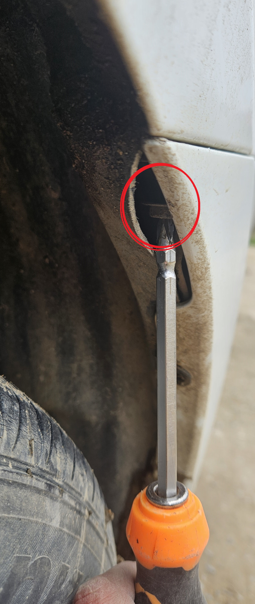 Где подкрыльник у нас будет саморез подключи с центром под крестовую отвертку. Выкручиваем его.