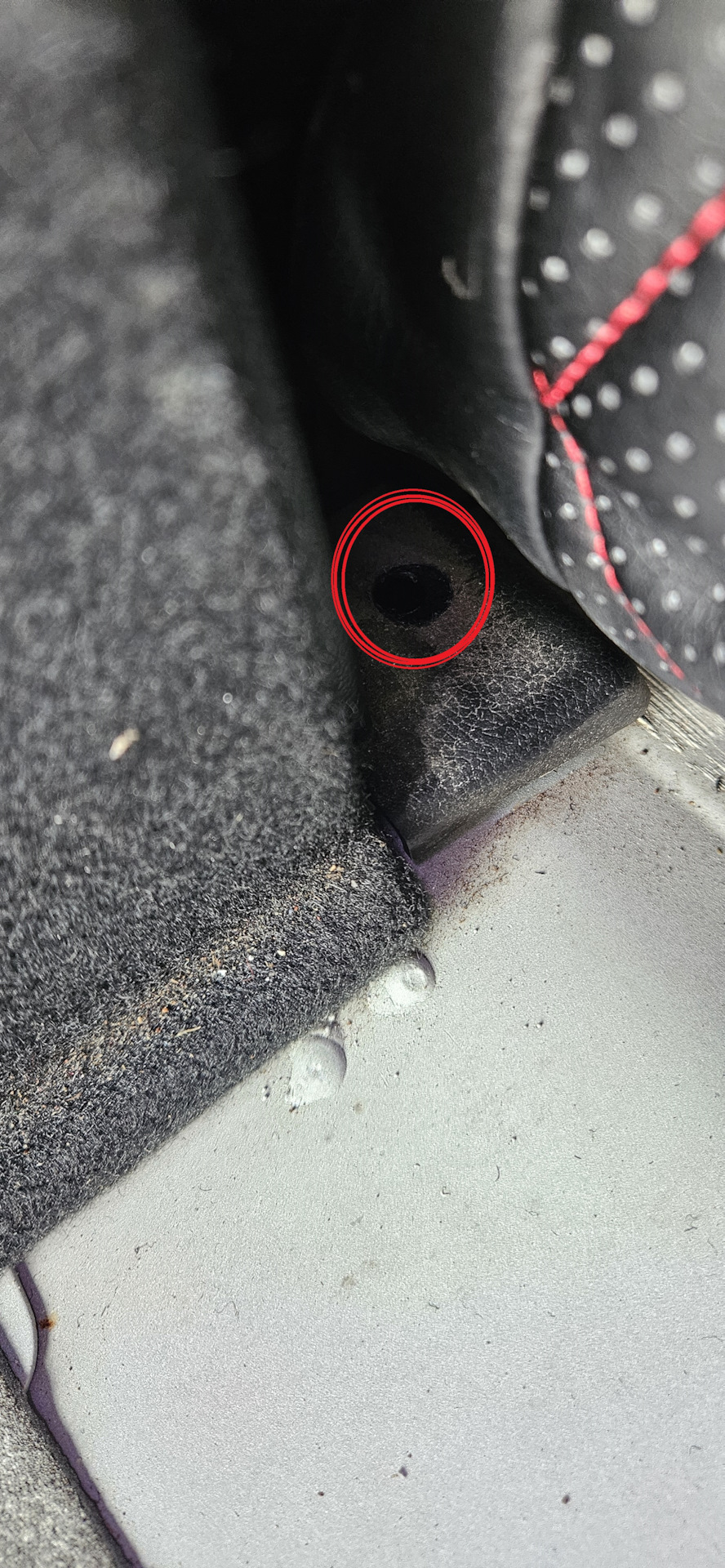 Переходим в салон машины, опрокидываем сзади пассажирское сиденье и снимаем там клипсу плюс еще одну слева.