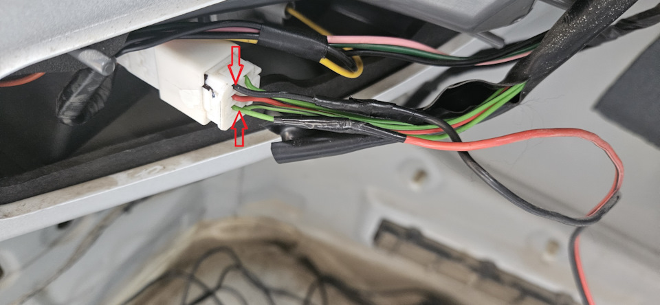 (До этого прошлый хозяин запитывал с этих двух проводов провода на камеру заднего вида).