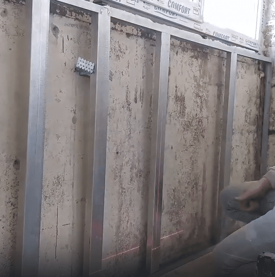 Установите деревянные рейки на стены и пол так, чтобы они образовали каркас для крепления ламината. Расстояние между рейками должно составлять 30-40 см.