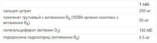 Цитрат кальция — эффективная и безопасная форма кальция, необходимого для укрепления костей (увеличения минеральной плотности костной ткани). Способствует более полному и безопасному всасыванию кальция из ЖКТ, ингибированию выработки паратгормона и предотвращению резорбции костной ткани.