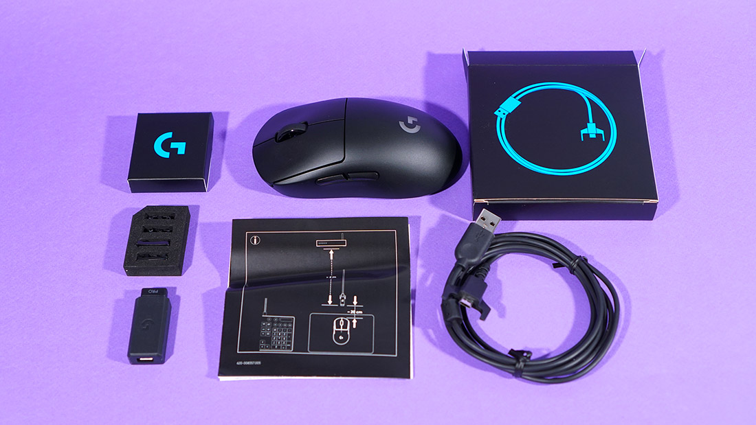 Все эти почести достанутся не только мышке, но и всем прочим деталям, которые максимально четко продуманы с точки зрения эргономики. Собственно, в комлекте, кроме мыши, идет стандартный беспроводной набор: кабель для подключения, дополнительный набор кнопок для правой стороны, заглушки для обеих сторон, радиоконнектор для подключения мыши и переходник, который соединяется с кабелем для расположения радиоконнектора в непосредственной близости от мыши. Похоже, Logitech таки прислушались к фидбеку пользователей, потому что и тут кое-что поменялось. Кабель для зарядки мышь с Micro-USB коннектором стал тоньше, а еще с него наконец-то сняли тканевую оплетку, за счет чего он стал легким и гибким. Если даже мышь разрядится где-то посреди игры, кабель при зарядке никоим образом не будет мешать игровому процессу.