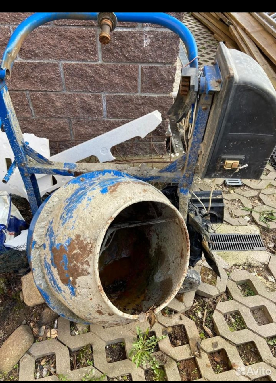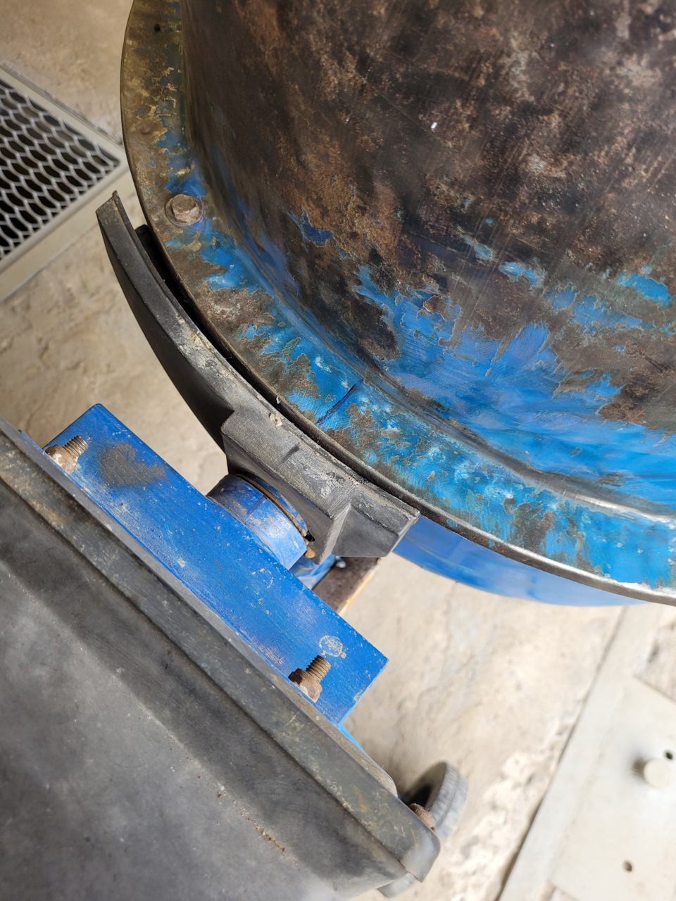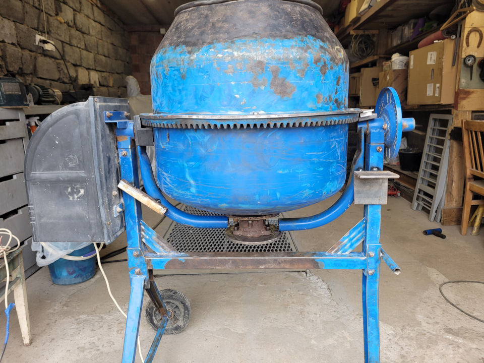 В своем гараже появилась необходимость заливки пола. Пролистав множество объявлений нашел недорогой вариант бетономешалки, но не совсем в работоспособном состоянии, а именно необходимо заменить подшипники. Бетономешалка досталась в таком состоянии: