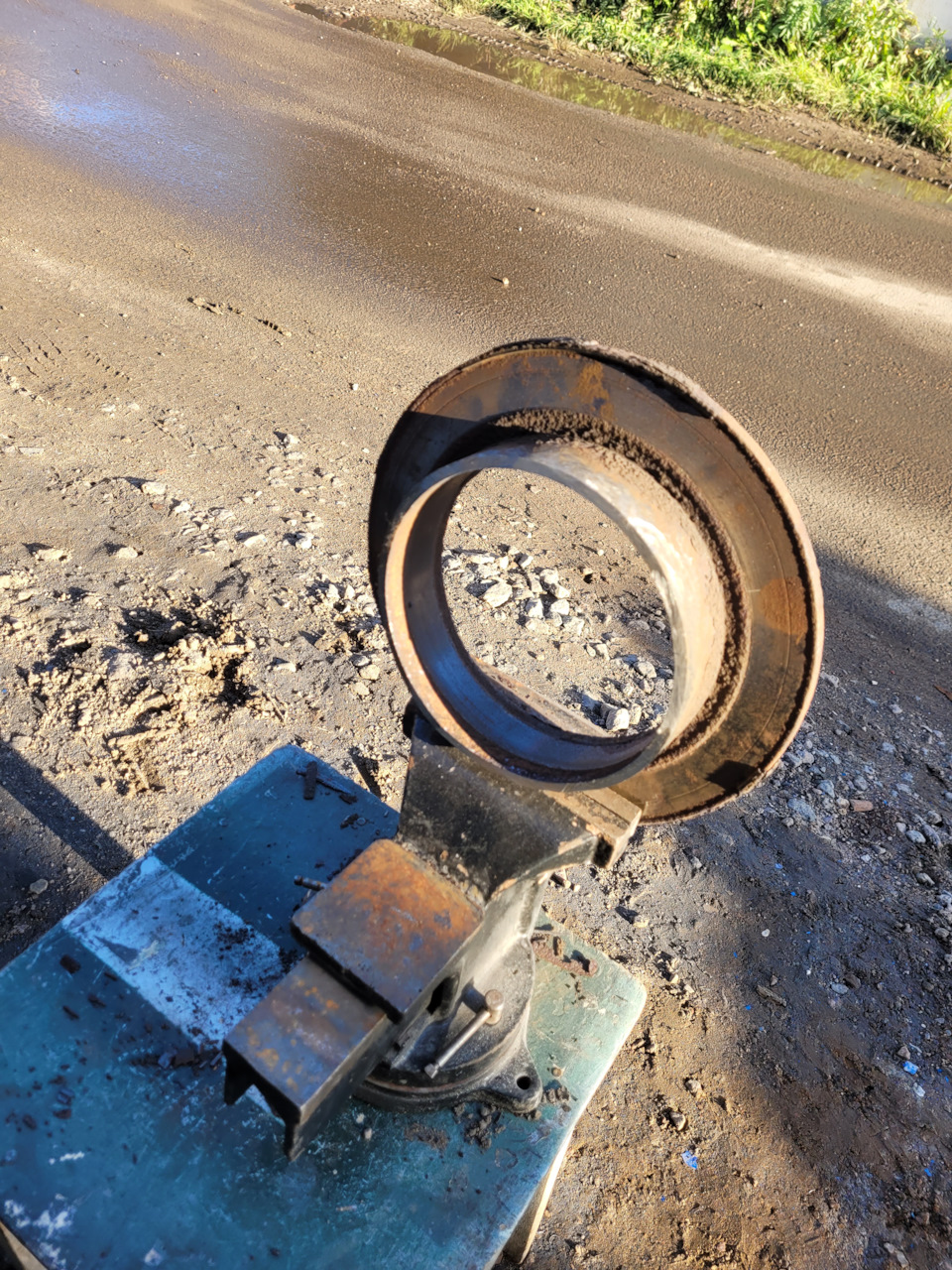 Берем тормозной диск и отрезаем с помощью болгарки его торцевую часть.
