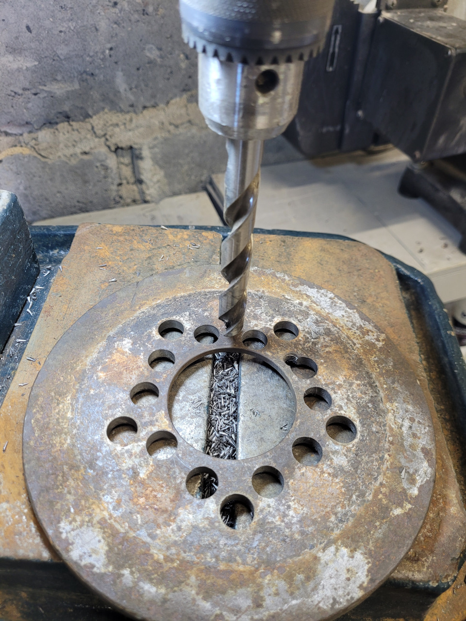 Далее в получившейся отрезанной заготовке высверливаем отверстия, через которые будем приваривать ее к существующему узлу бетономешалки: