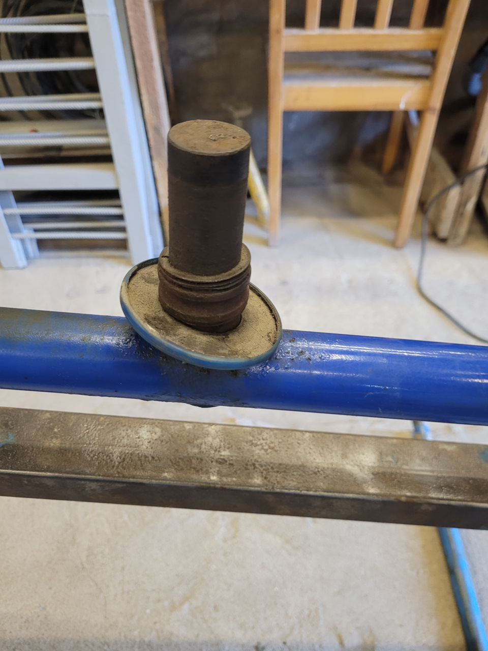 Следующий шаг – отсоединение опорной конструкции от груши. Многие мастера предупреждают, что фиксирующие гайки, расположенные с внешней стороны, со временем покрываются ржавчиной. Такой негативный процесс неизбежен, поскольку установленные метизы при приготовлении рабочего раствора контактируют с влагой. Для облегчения их снятия рекомендуется предварительно обработать гайки составом wd-40. По прошествии 10 минут можно попробовать открутить крепежные элементы.