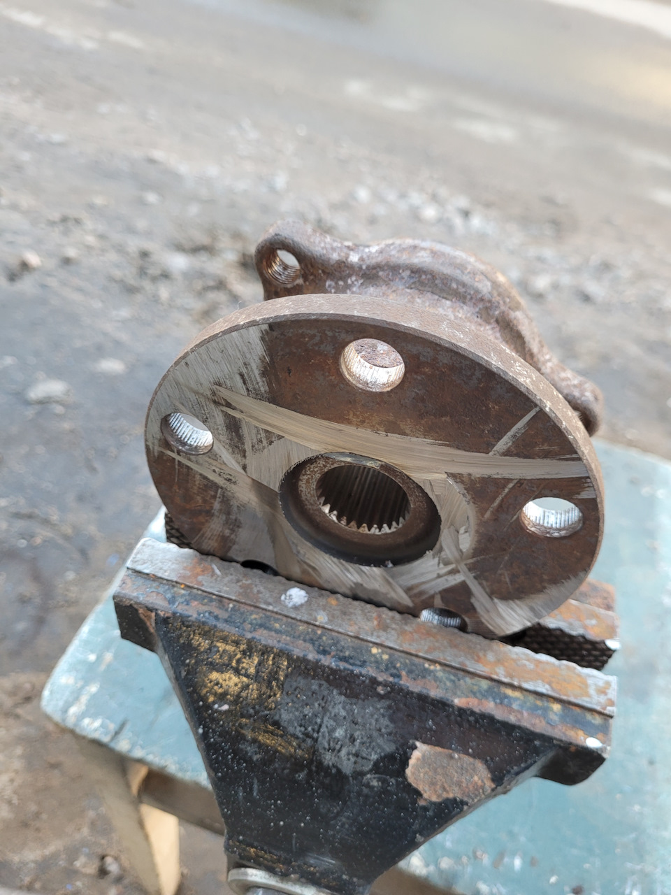 Обрезаем болгаркой выступ ступицы, который будет мешать при сборке нового узла (будет упираться в сварной шов):