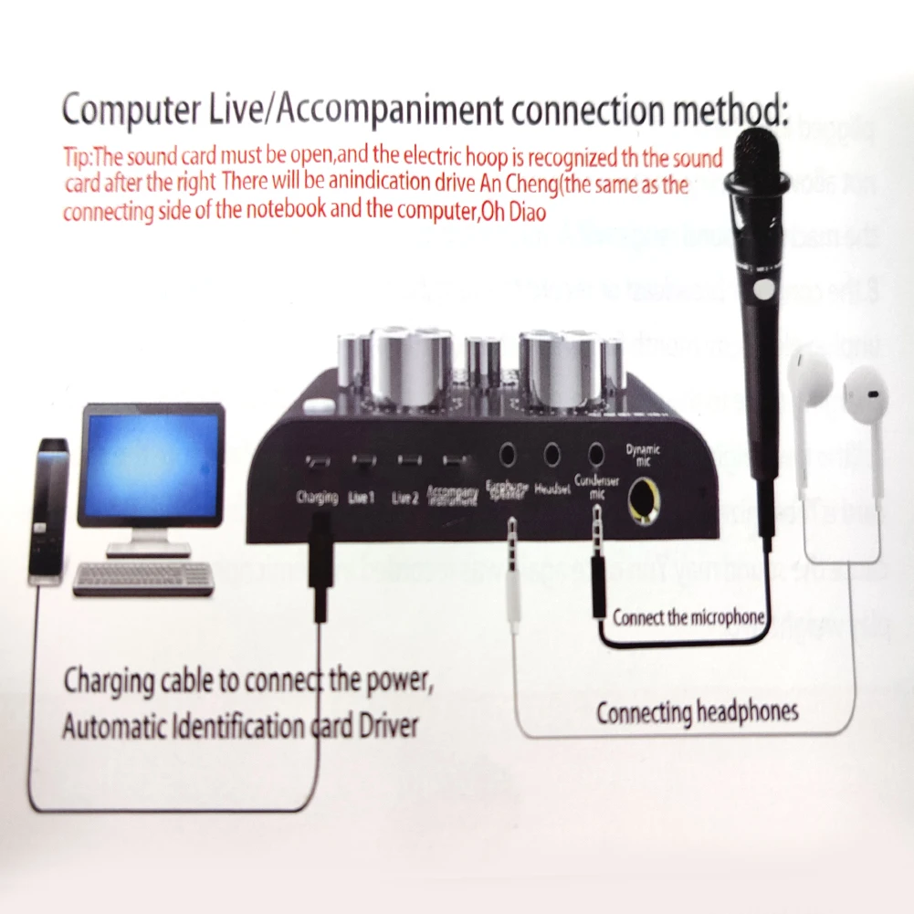 Звуковая карта Singing Live Sound Card V8 2 имеет компактный размер и проста в использовании. Она подключается к компьютеру через USB-порт и совместима с различными операционными системами, что обеспечивает удобство подключения и использования в различных условиях.